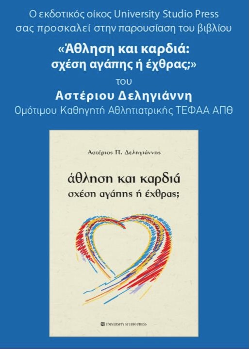 Επίσης έγινε η παρουσίαση του νέου βιβλίου του κ. Δεληγιάννη με τίτλο «Άθληση καικαρδιά: Σχέση αγάπης ή έχθρας;».